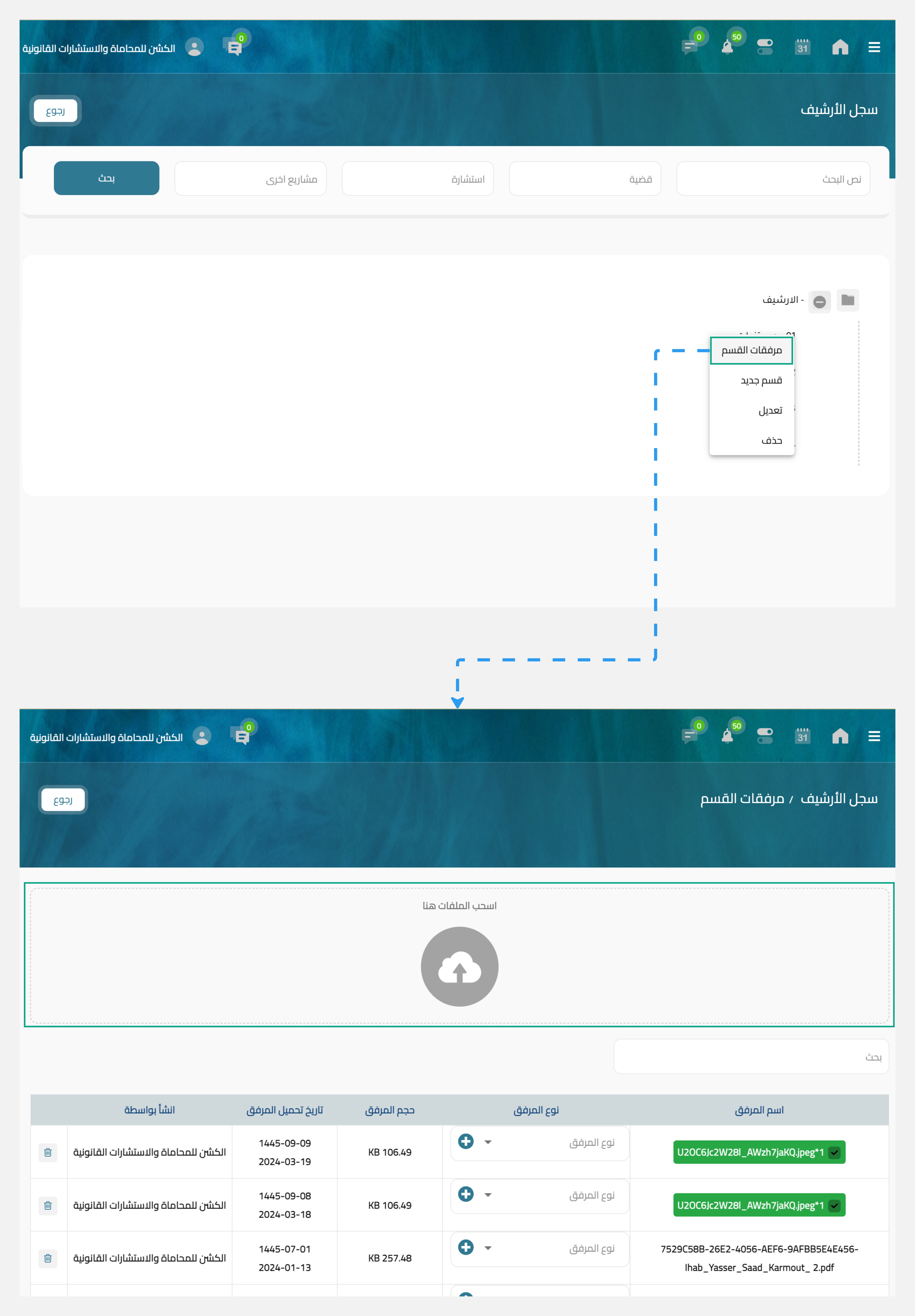 - يمكنك إستعراض قسم معين داخل الارشيف عن طريق إختيار القسم ثم الضغط بالفارة بالأصبع الأيسر "كليك يسار" حتي تتمكن من إستعراض المرفقات داخل القسم.