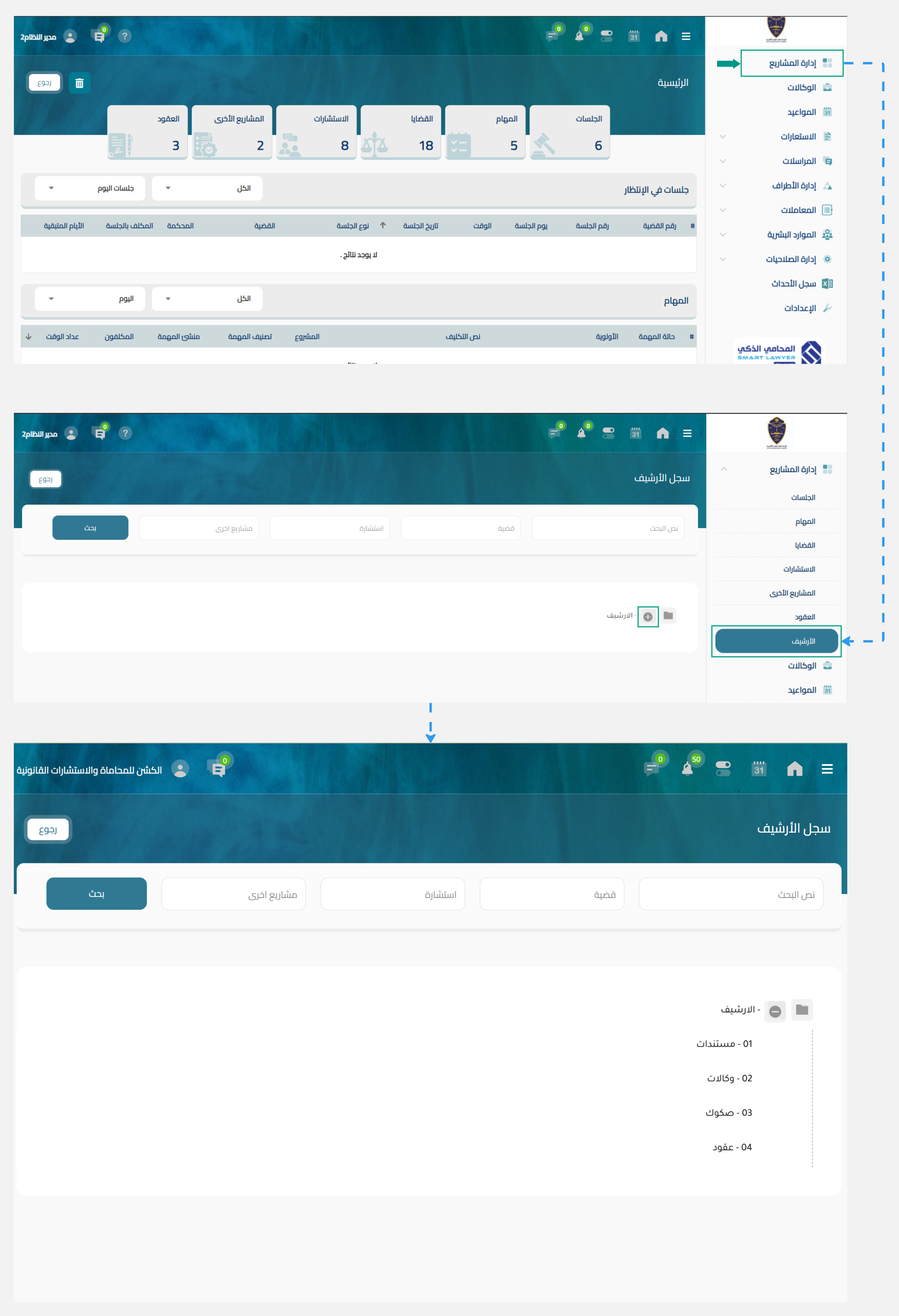 - أختر "الارشيف" من ضمن خيارات إدارة المشاريع بحيث يظهر لك الصفحة الرئيسية للأرشيف.