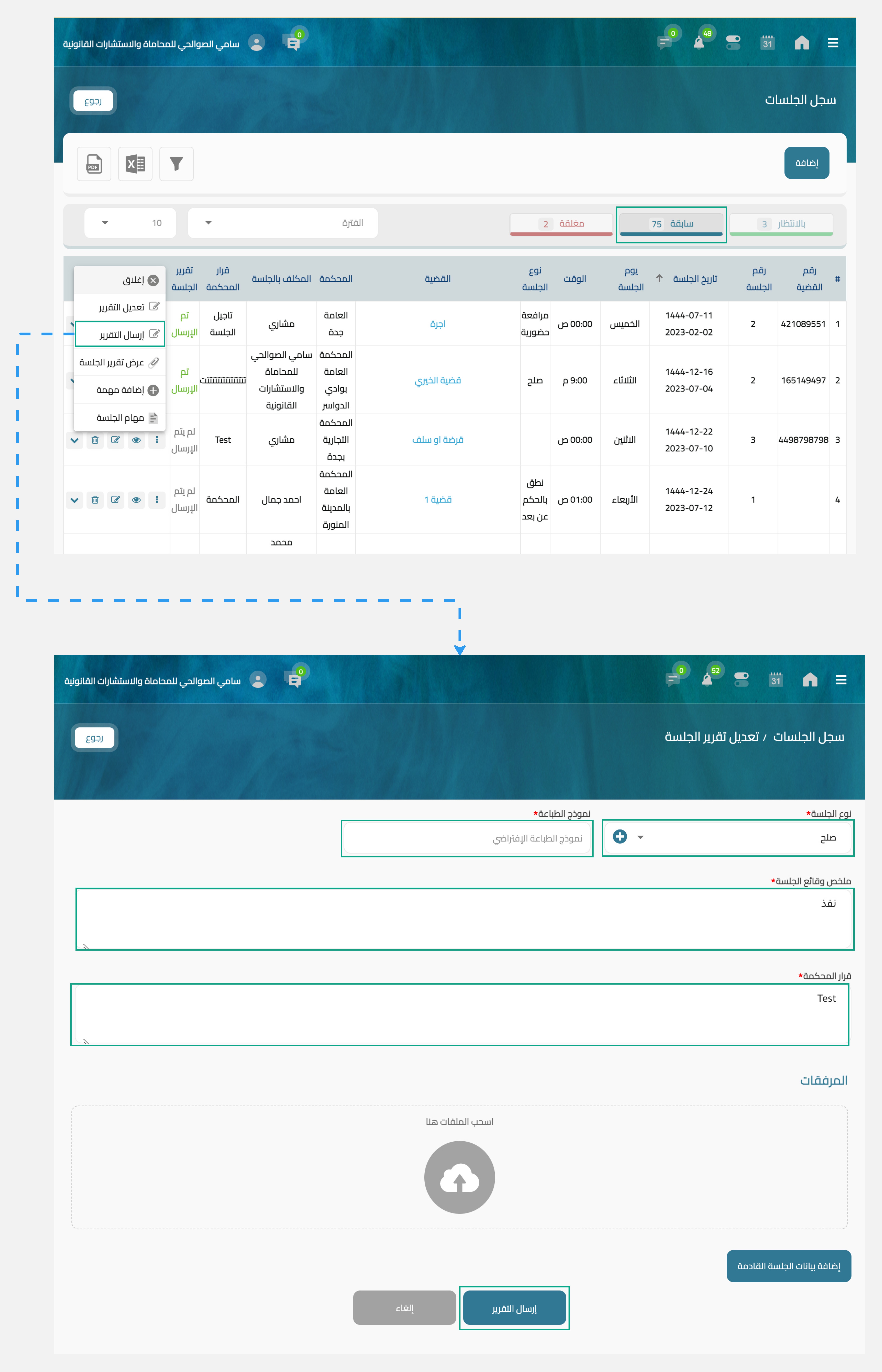 ارسال تقرير الجلسة