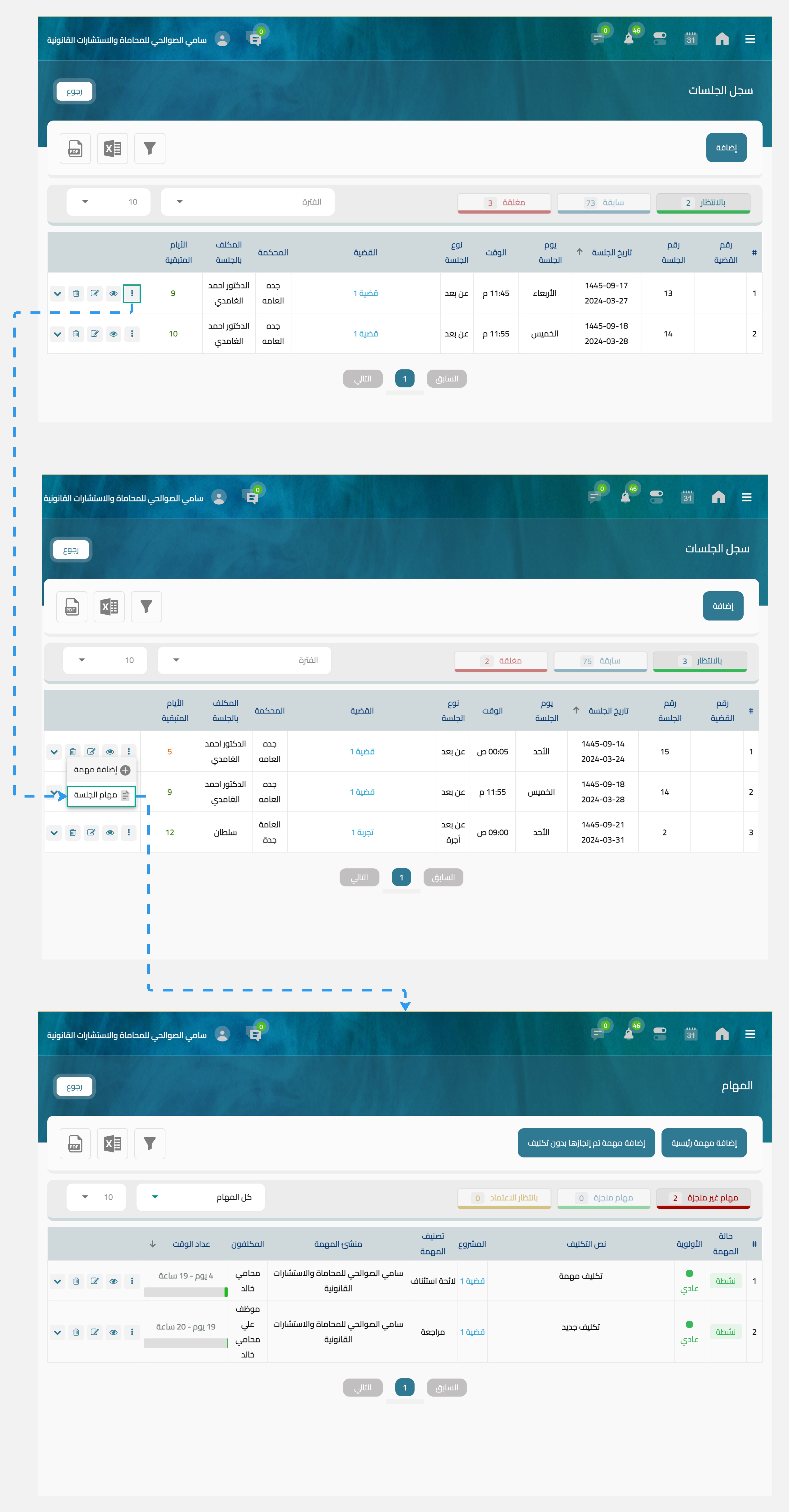 يمكنك الاطلاع على جميع المهام المتعلقة بالجلسة عن طريقة متابعتها حسب الصلاحية المخصصة لك.