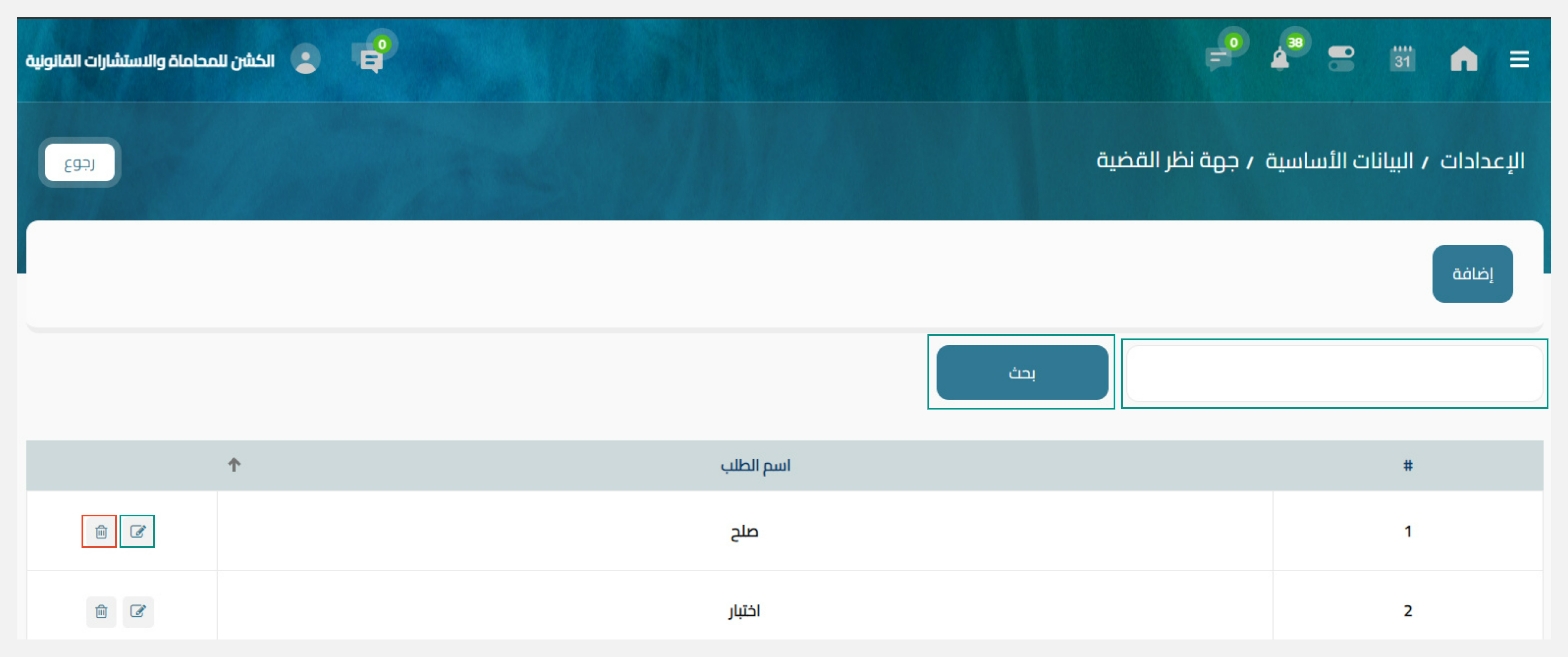 - أضغط على زر اضافة لتقوم باضافة جهة نظر قضية جديدة داخل النظام.