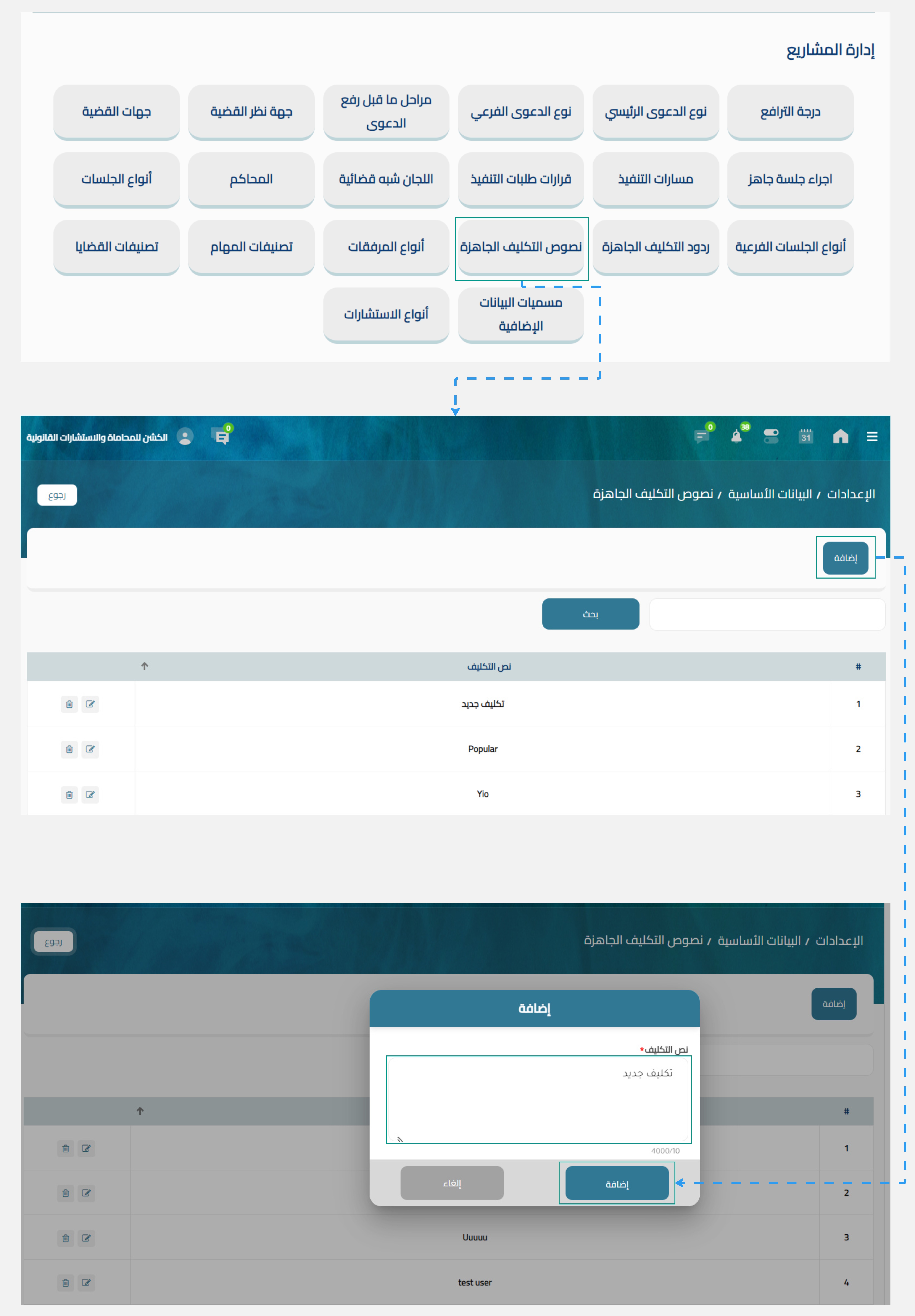 - أضغط على زر اضافة لتقوم باضافة نص التكليف الجاهزة جديد داخل النظام.
