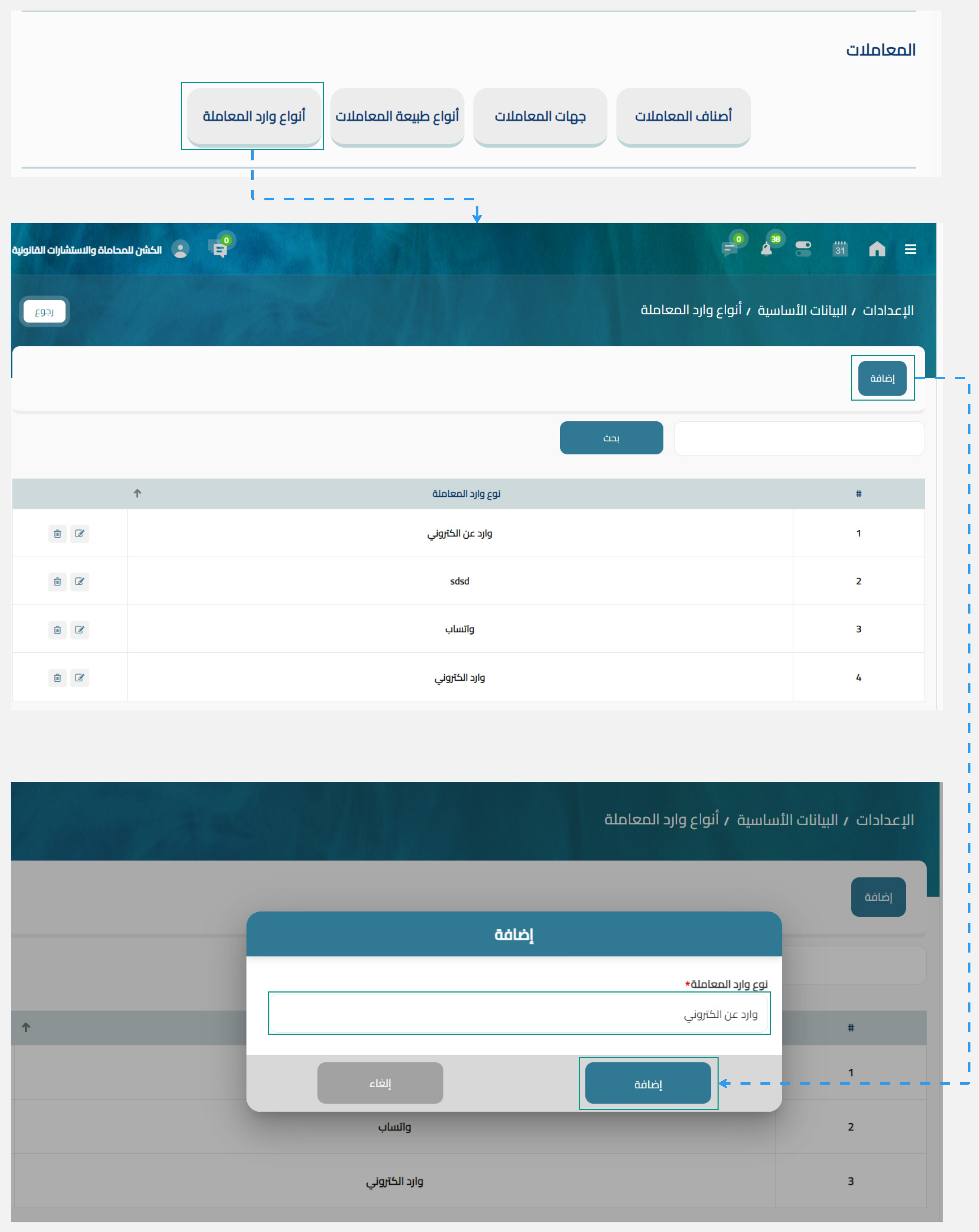 - أضغط على زر اضافة لتقوم باضافة نوع وارد معاملة جديد داخل النظام.