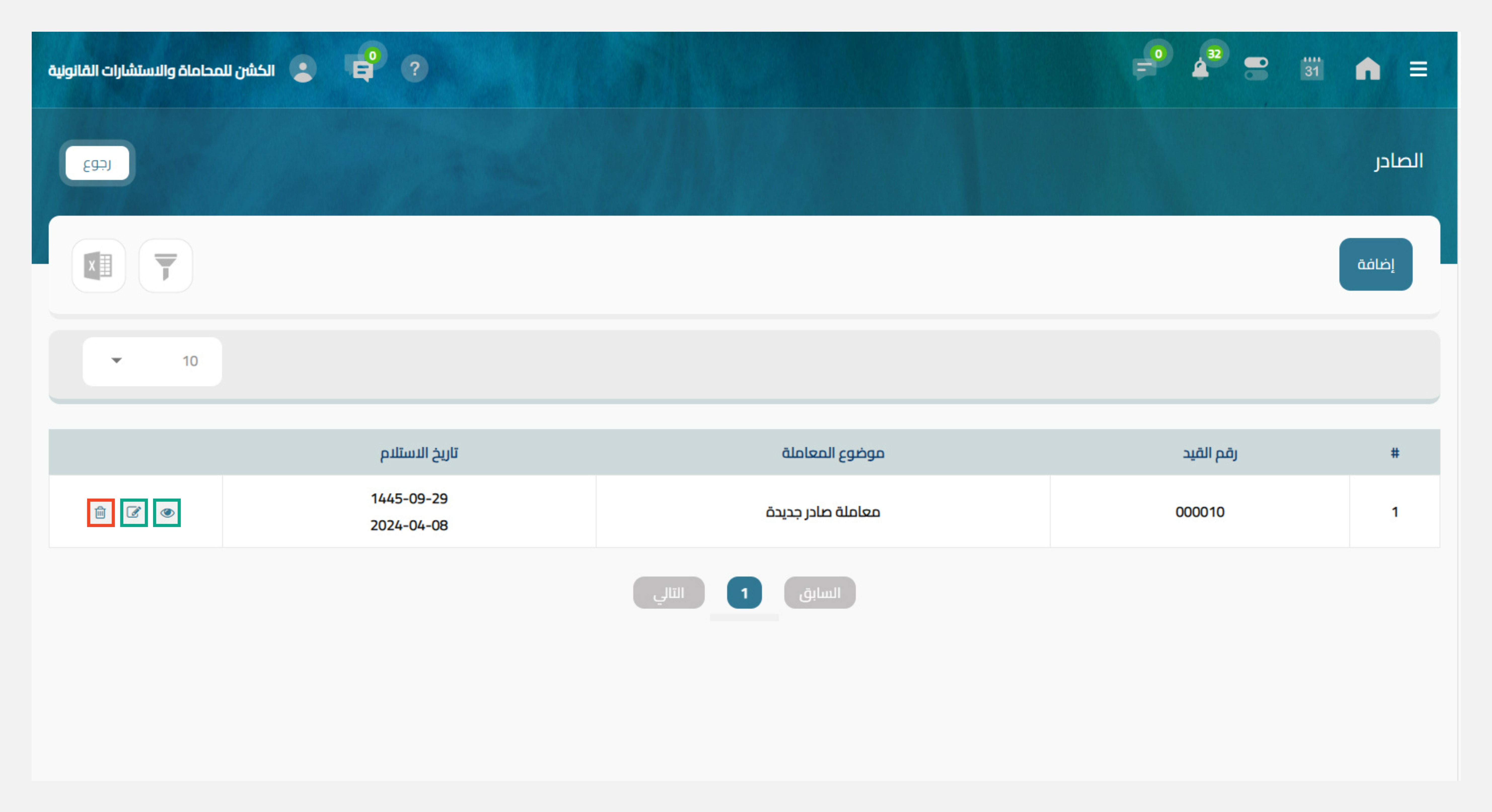 - إطلاع: تمكنك من إستعراض بيانات المعاملة المحددة والاطلاع على جميع البيانات الخاصة به والمرفقات المُضافة.