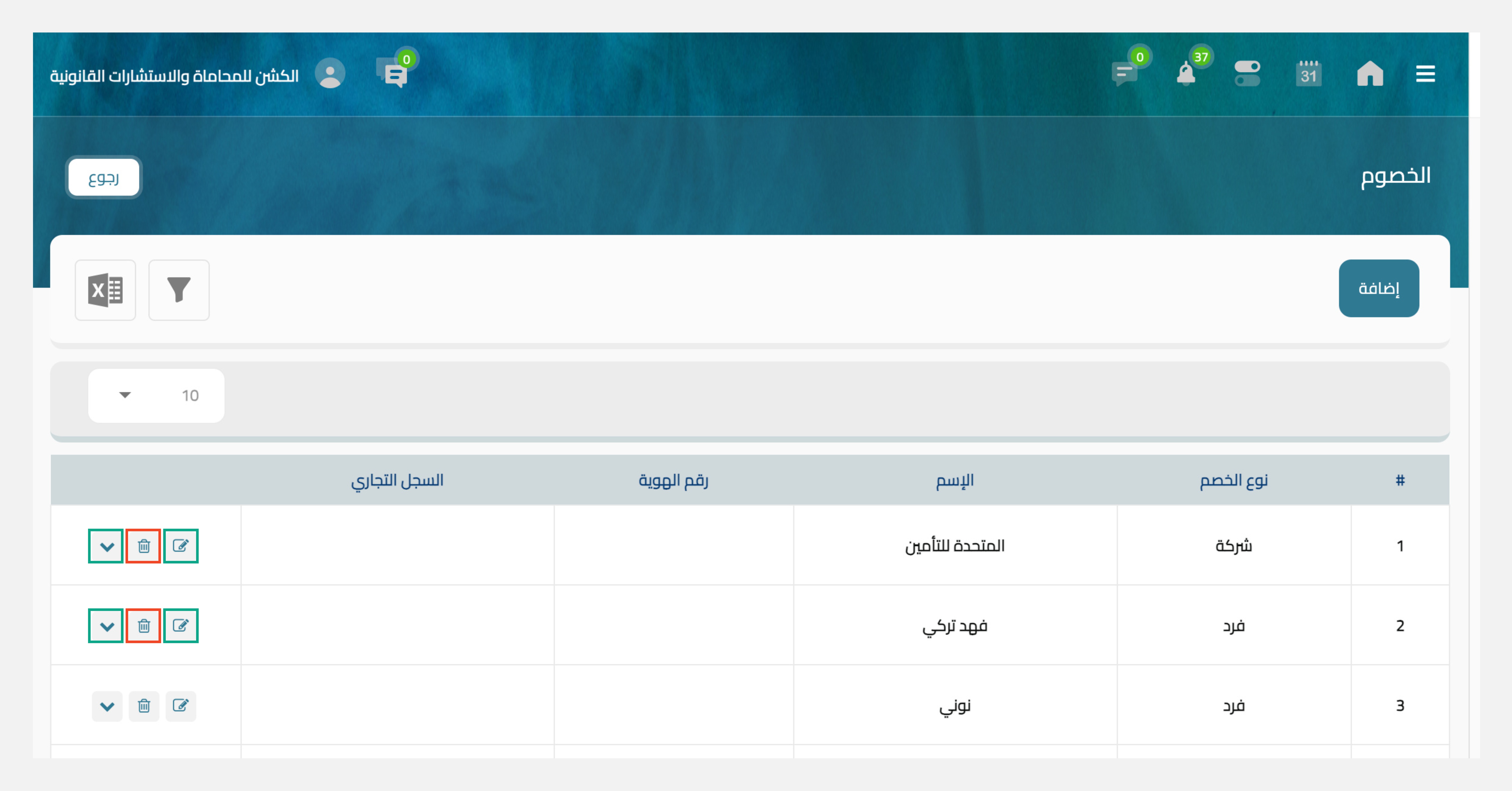 تعديل بيانات خصم حذف خصم إدارة الخصوم اجراءات الخصوم الإطلاع على بيانات خصم اجراءات الخصوم يمكنك القيام ببعض الاجراءات للخصم المحدد وتشمل: إطلاع: تُستخدم للإطلاع علي بيانات الخصم المُحدد. التعديل: لتحديث بيانات الخصم. الحذف: لحذف بيانات الخصم من النظام. هل كان المحتوى مفيد لكم؟ شكرًا لكم على التقييم! شكرًا لكم على التقييم! ساعدنا بتقديم إقتراحتكم من خلال صفحة التقييم صفحة التقييم من هنا.